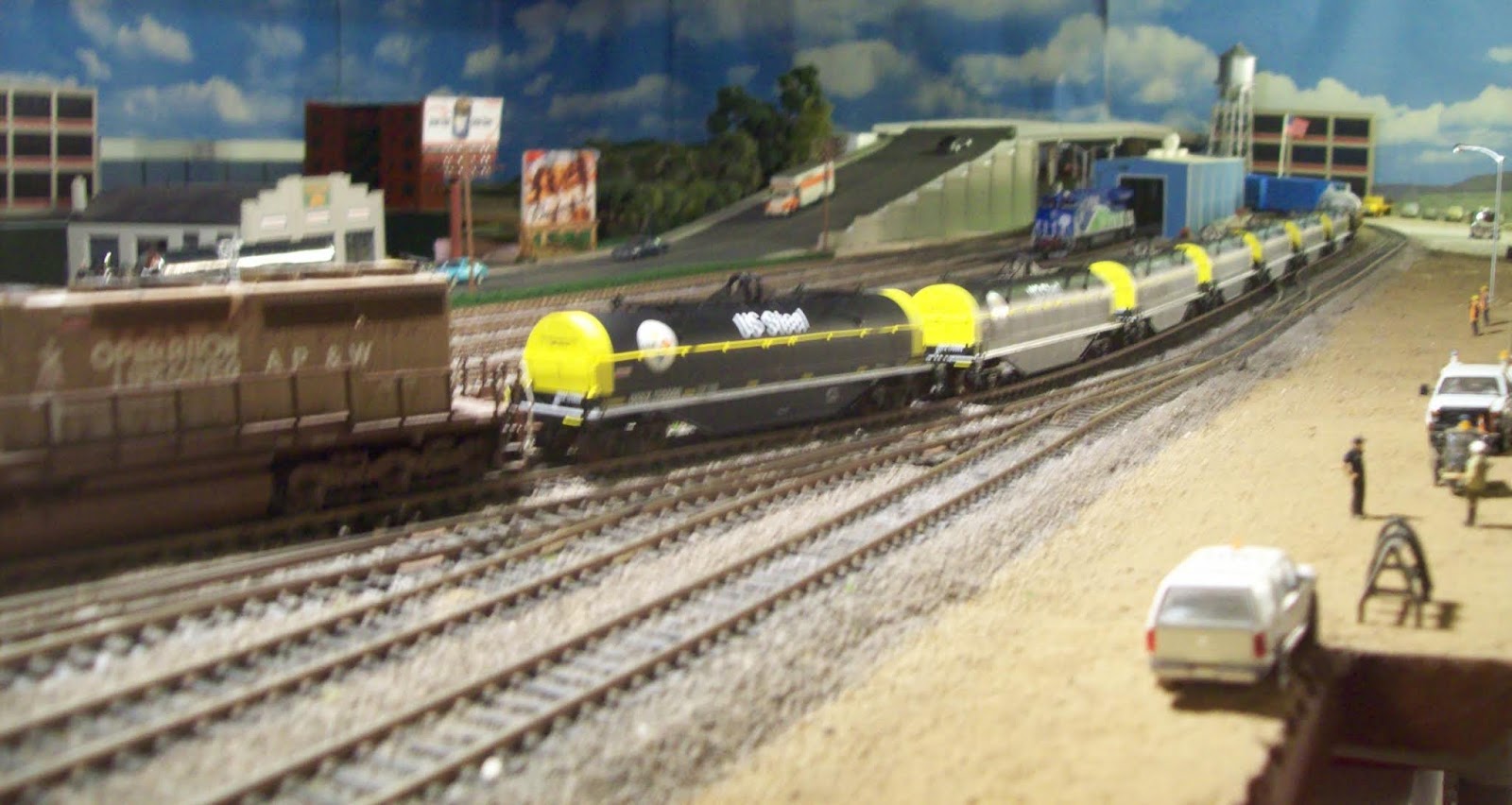The final freight car is another empty picked up from Johnson Foods; an empty vegetable oil tank car. Vegetable oil is heavily used in processed foods, and during busy periods it is not uncommon to see a string of vegetable tankers headed to -or from- Johnson Foods.