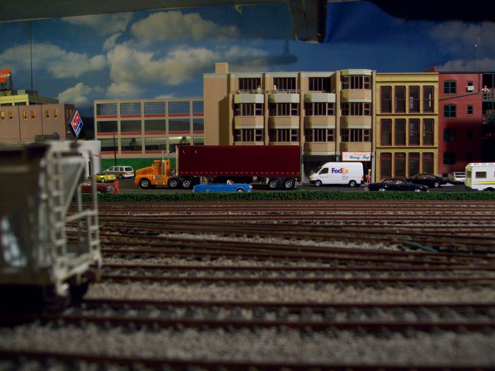 An Allied Van Lines tractor trailer turns onto Main St. from Market St. Since it's a container and not a van trailer, it is likely carrying a load from one of the downtown warehouses.